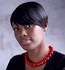 Introducing Corinthia Peoples. Wow factor, chunky red coral beaded necklace. Sterling silver toggle closure.