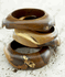 AS SEEN IN SEPTEMBER 09 VOGUE! SURevolution Neur Wood Bangle. Layer these bangles on your wrist. Hand-carved pui wood. African-inspired design. Gold-plated accents. 4.3"x3.5"x1.1"H. Handcrafted in Colombia.SURevolution is a green, fair trade fashion house. Fair trade is an organized social movement and market-based approach that aims to help producers in developing countries and promote sustainability. The movement advocates the payment of a "fair price" as well as social and environmental standards in areas related to the production of a wide variety of goods. It focuses in particular on exports from developing countries to developed countries, most notably handicrafts, coffee, cocoa, sugar, tea, bananas, honey, cotton, wine, fresh fruit, chocolate and flowers.