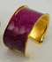 by Rebecca Norman. Sculptural cuff inspired by exotic textures. Plated metal with leather inlay. Fuschia snake with gold. Made in the USA.What's not to love about designer Rebecca Norman? From her best-selling sculptural jewelry to the new textured clutches now available at MOSAIC, Rebecca's unique, special items are handcrafted with flair out of her Solana Beach, CA studio. Her modern aesthetic is the result of an adventurous spirit and vast global life experiences.